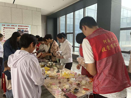 “我們的冰皮月餅制作主要分為搟餅皮、團餡料、壓模型三個步驟……”志愿者詳細地向現場參加活動的群眾進行講解冰皮月餅的制作步驟和技巧,大家認真地聽講,在志愿者的指導下,迫不及待地戴上手套進行嘗試制作,做餅皮、盤餡、壓制,社區群眾相互配合,交流制作技巧,不一會的工夫,一盤盤五顏六色、形式各樣的冰皮月餅呈現在大家眼前,看到自己制作的冰皮月餅,現場群眾臉上洋溢出滿意、開心的微笑,現場氛圍其樂融融。不少群眾表示,這是自己第一次制作冰皮月餅,感覺特別有趣,既能充分感受到了中秋佳節的濃濃氛圍,又能增加與鄰里之間的相互交流,這次活動的開展很有意義。