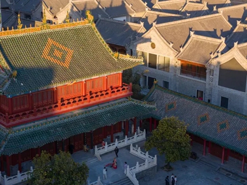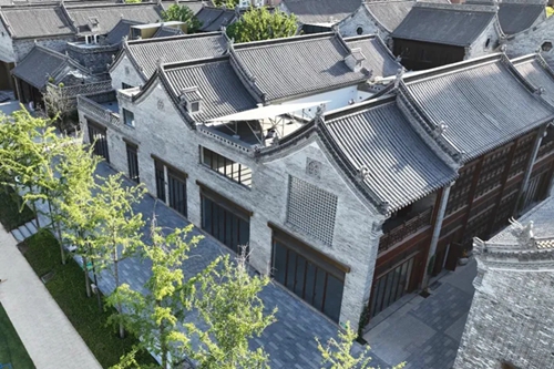 極具傳統(tǒng)特色的院落,是街區(qū)建筑設(shè)計的一大亮點。設(shè)計團隊以河南傳統(tǒng)民居為原型,從建筑形式和整體風貌上盡可能保證“原汁原味”。青磚灰瓦,飛檐斗拱,既保留了傳統(tǒng)建筑的韻味,又和街巷動線相通,實現(xiàn)由動到靜的過渡,極大地豐富了空間層次。